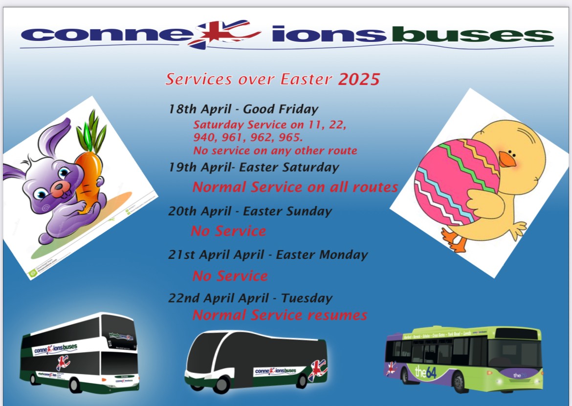 On Good Friday, we will only be operating the services that WYCA pay for (the 11, 22, 940, 961,962, 964 and 965) and these will be to a Saturday timetable.