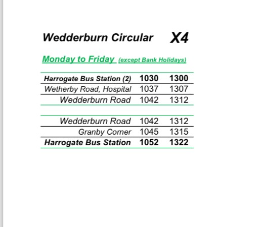 Service X4 re-instated from Harrogate to Wedderburn from 20th May